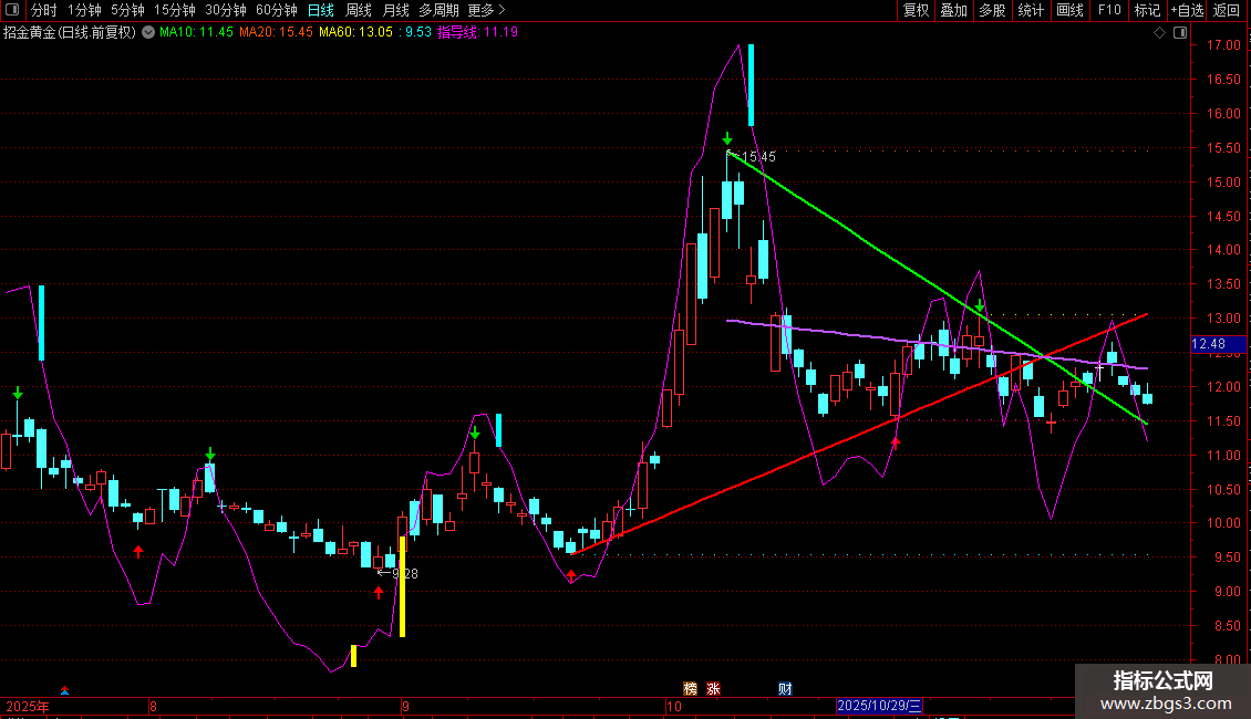 指导线:重心+GAO*(RSI-0.5),COLORMAGENTA,LINETHICK1;