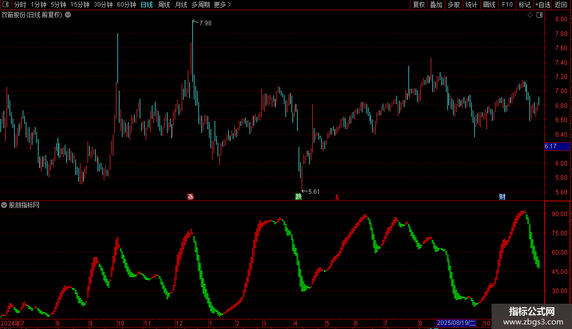 VAR17:=EMA((VAR11-VAR13)/(VAR16-VAR13)*100,8);