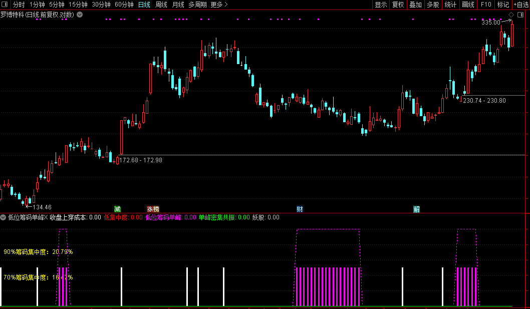 1. 低位筹码单峰:核心信号。当90%筹码集中度<10% 且70%集中度<6%,表明筹码高度锁定;同时股价突破近期横盘区间,且收盘价位于密集筹码峰的中低位区域,形成典型的“单峰密集”结构。