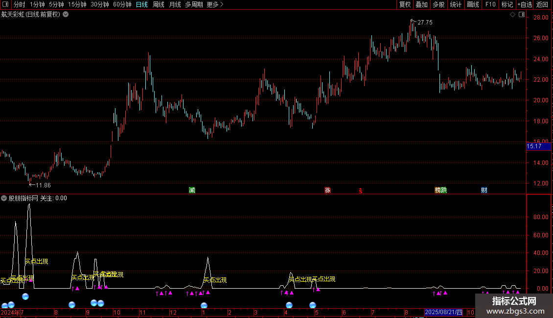 DRAWTEXT(CROSS(关注,4.5),关注,'买点出现'),COLOR00FFFF;