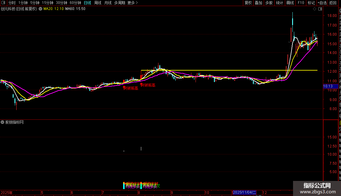 DRAWTEXT(BUY_SIGNAL,L*0.95,'突破前高'),COLORRED;