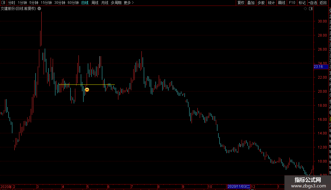 2、失败信号处理:主图黄色横线兼具止损与二次介入参考作用。股价调整后重新突破该线,可视为趋势转强信号。