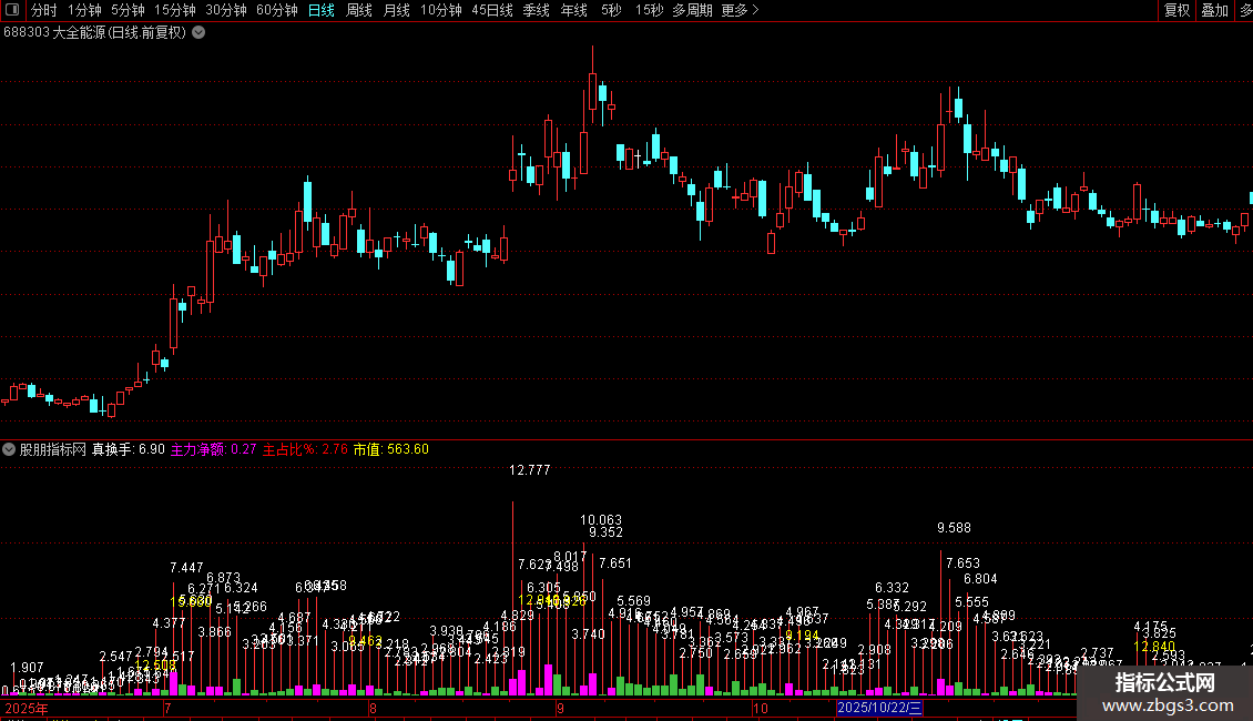 大家都知道,换手率越高,个股活跃度通常越大。而真实换手率(换手Z)能有效识别“真实活跃股”,避免被虚假热度误导。使用该指标时需结合位置判断——处于高位或低位意义不同。当换手Z超过50%,意味着近半数可交易筹码已换手,市场俗称“换庄”。