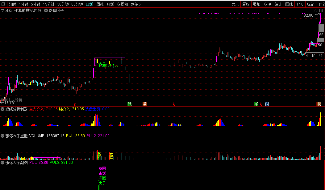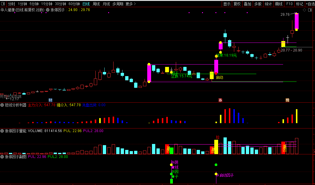 指标含2主3副4个选股器。设计思路:以涨停的思路 新视觉 实战中验证过的新思路 以确认基因黄色柱 再次捕捉尾盘阴线 涨停因子发出信号 预测个股短周期中拉出大阳 或涨停,黄色柱基因不死 后面大概率必然会拉出一根大阳 或 涨停的上攻启动因子本指标运用介绍