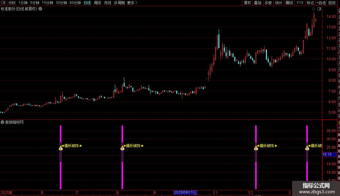 擒妖破阵指标是短线强势股捕捉类指标,核心目标是识别A股市场中具备妖股特征的涨停个股,捕捉其突破关键压力位的买入信号,主打短线强势行情的启动点识别。