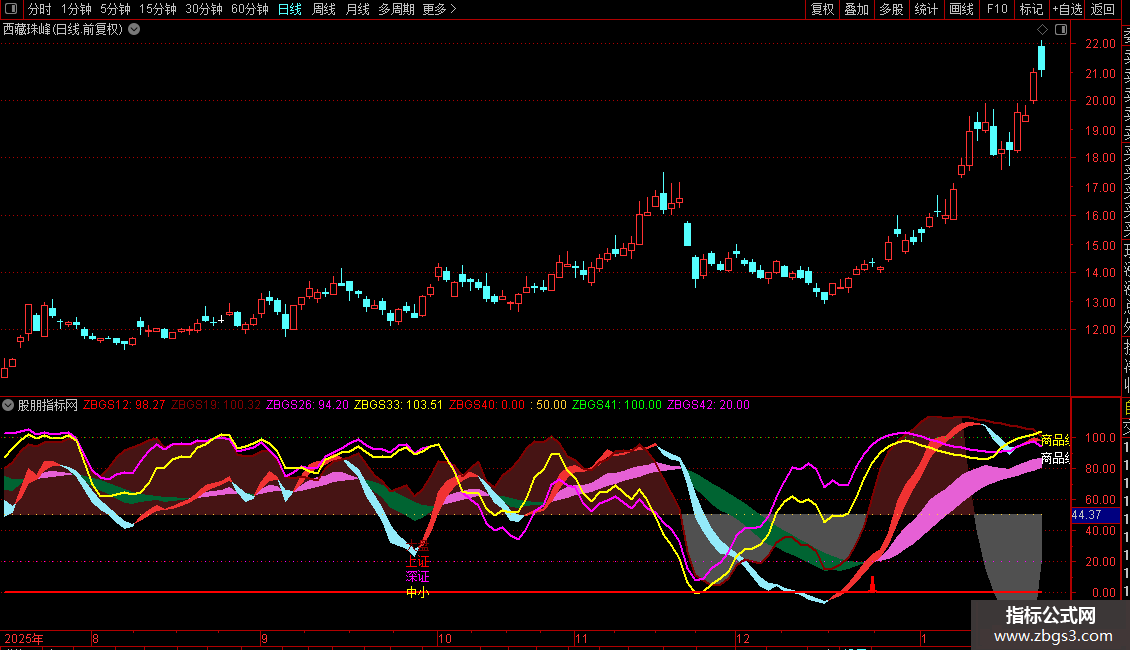 DRAWTEXT(CURRBARSCOUNT=ZBGS2,10,'深证'),COLORFF00FF;
