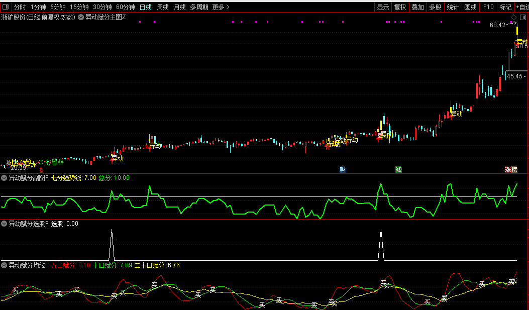 3)当出现“异动”信号时,赋分分值大于等于7分为强势