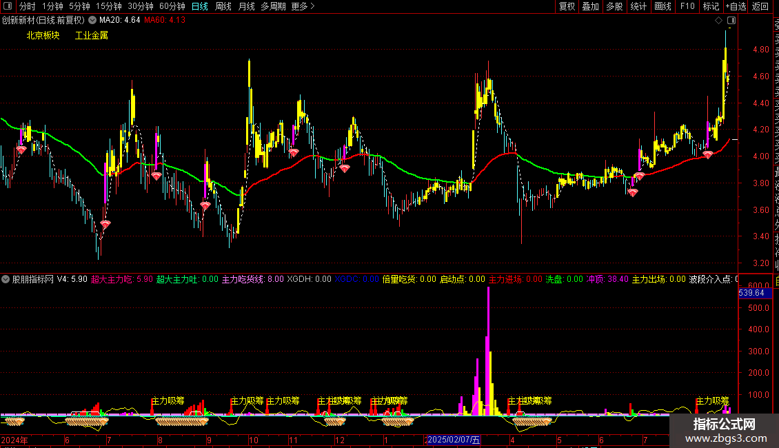 超大主力吃:IF(V4>=0,V4,0),COLOR7F00FF,LINETHICK2;