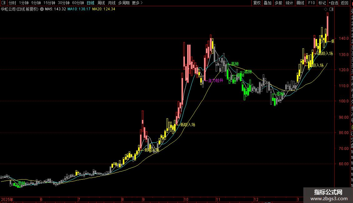 次X_BA:=MA(LOW,20)*1.1,COLORYELLOW;