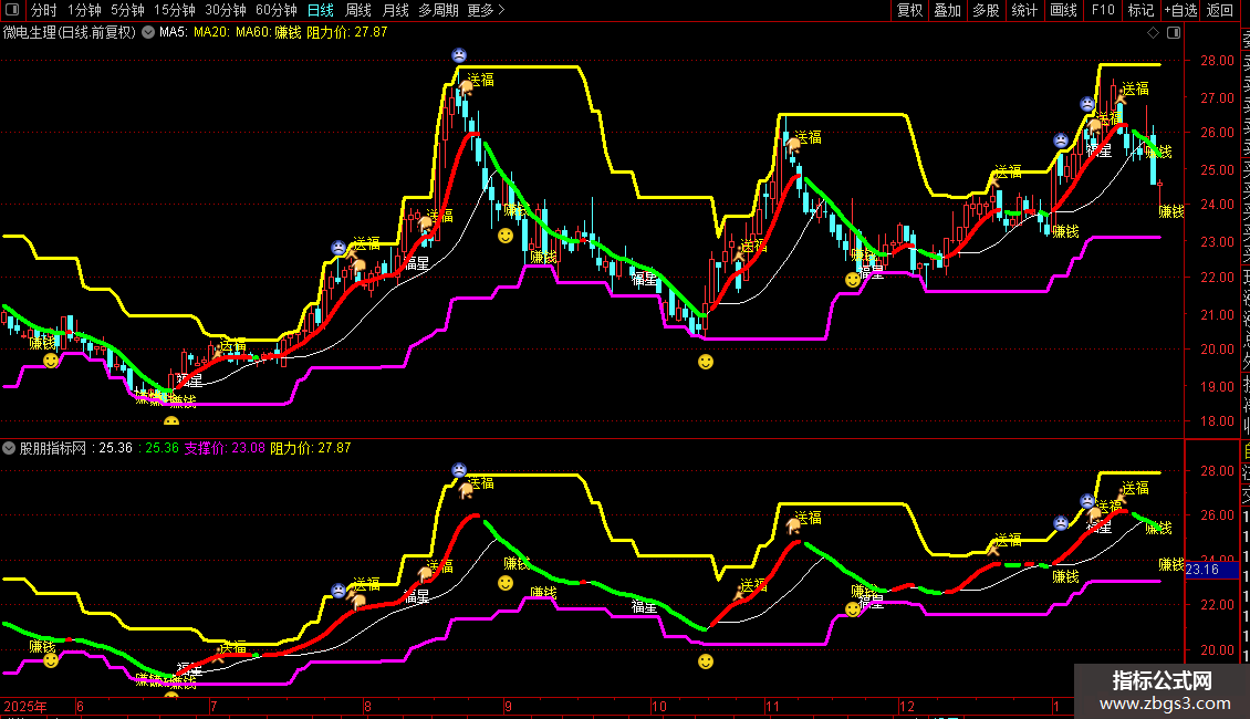 2. 关键价位:洋红粗线=【支撑价】,黄色粗线=【阻力价】,股价回踩支撑企稳做多,触碰阻力承压止盈/减仓。