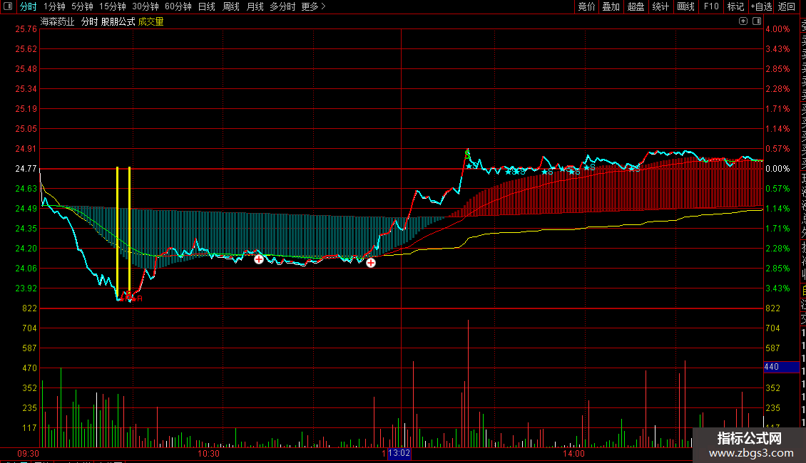 适用于通达信分时图或1分钟以上周期,重点关注黄色柱状区(支撑-阻力区间)、买卖星标及EXPMA金叉信号,配合量能变化进行高抛低吸操作。