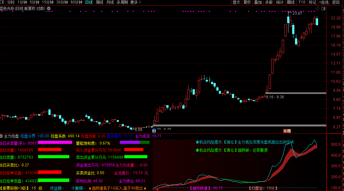 3. 实时操作提示:右上角同步显示洗盘、建仓、高抛、减仓、清仓等文字提示,黄色【主力黑心】提示为高风险信号,需果断控仓。