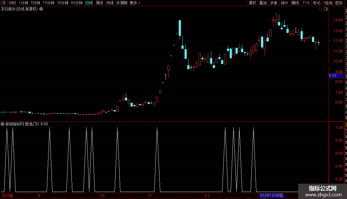 XG0:=CLOSE;XG1:=SMA(MAX(XG0-REF(XG0,1),0),5,1)/SMA(Abs(XG0-REF(XG0,1)),5,1)*100;XG2:=SMA(MAX(XG0-REF(XG0,1),0),10,1)/SMA(ABS(XG0-REF(XG0,1)),10,1)*100;XG3:=EMA(XG2,2);XG4:=EMA(XG1,2);XG5:=XG4-XG3;XG6:=-XG5;跃龙门X:crOSS(XG5,XG6) AND XG5>0.05;