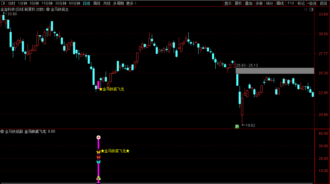 金马铁底飞龙指标是一款专为捕捉股价深度回调后的强势反弹信号而设计的量化指标,底部成功率很高,信号较少且比较集中,往往信号出现时就是大底部。