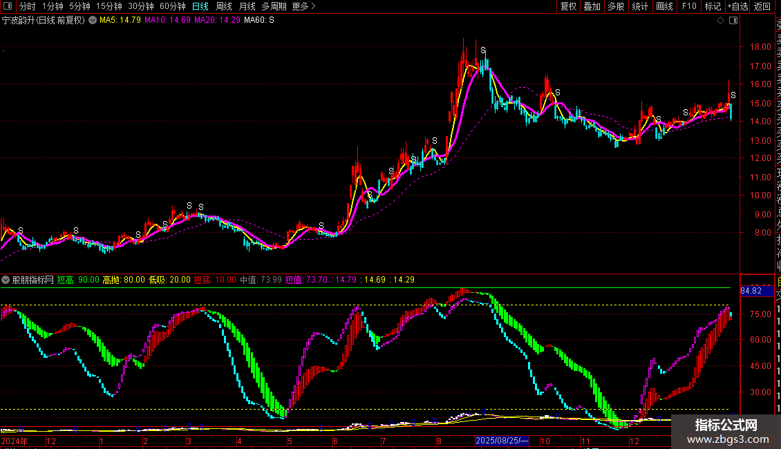 ZBGS1:=(CLOSE-LLV(LOW,60))/(HHV(HIGH,60)-LLV(LOW,60))*100;