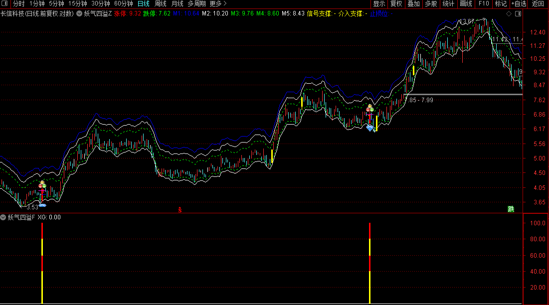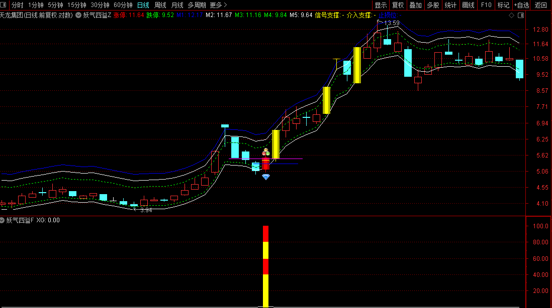 超强票一旦60分钟高位出现上影线,60分钟周期破M1线位价,就可以止盈