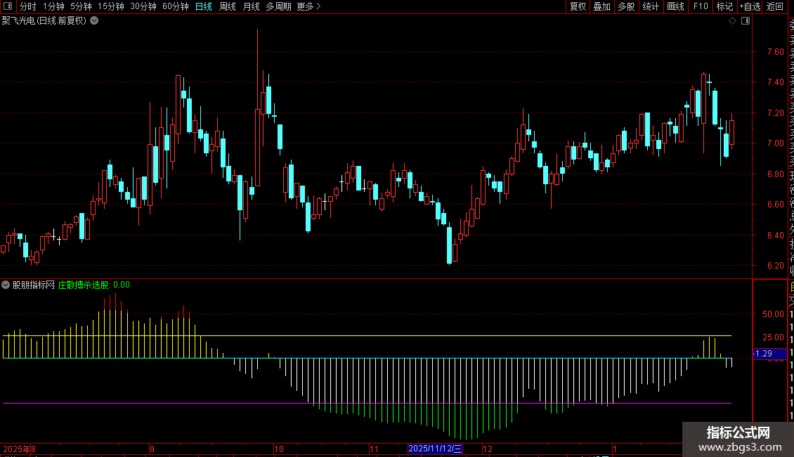 指标通过均线偏离度、价格波动区间和筹码分布,衡量股价所处的相对位置及主力与散户的博弈状态。当价格处于低位且筹码集中度显示主力高度控盘,同时散户参与度极低时,视为潜在强势启动信号。指标以多色柱状图直观反映庄家与散户的力量对比,特别关注极端背离区域的反转机会,用于捕捉主力吸筹完成后的爆发点。