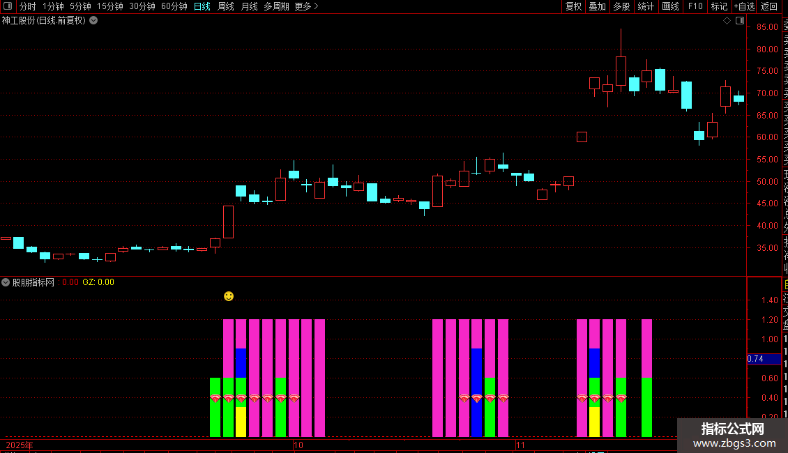 主力:=EMA((GU3-GU4)/(GU5-GU4)*100,13)*GU2;
