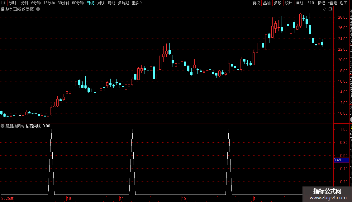 VAR16:=CLOSE/REF(VAR1,1)>1.030 AND VOL>REF(VOL,1) AND WINNER(CLOSE)>0.80 AND VAR2>0;