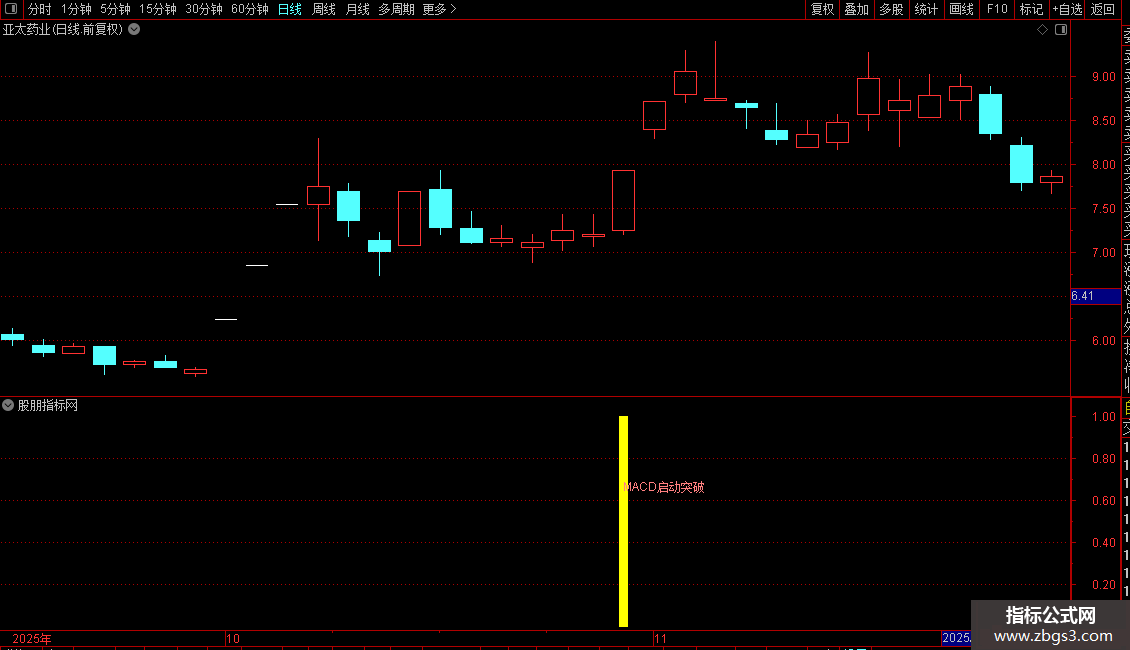 STICKLINE(MACD启动突破,0,1,1,0),COLORYELLOW;