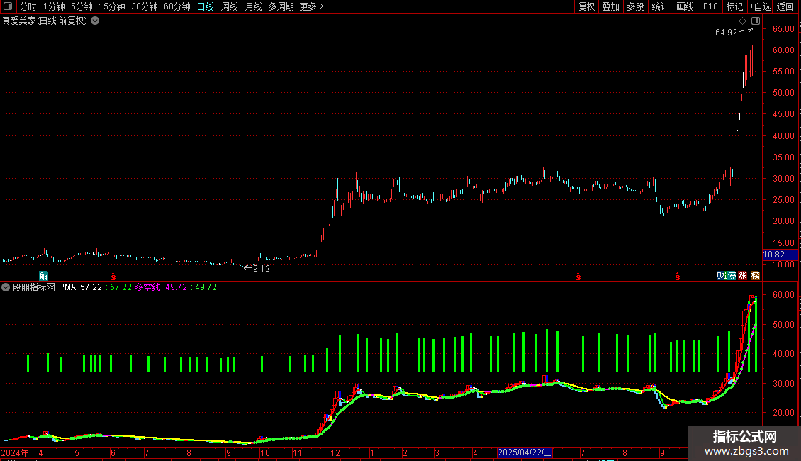 IF(A,多空线,DRAWNULL),COLOR33FF33,POINTDOT,LINETHICK4;
