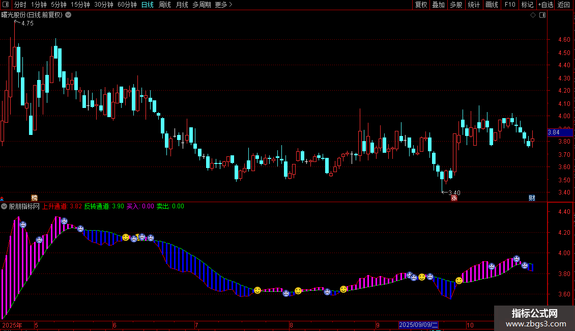 反转通道:MA(上升通道,15),COLORGREEN;