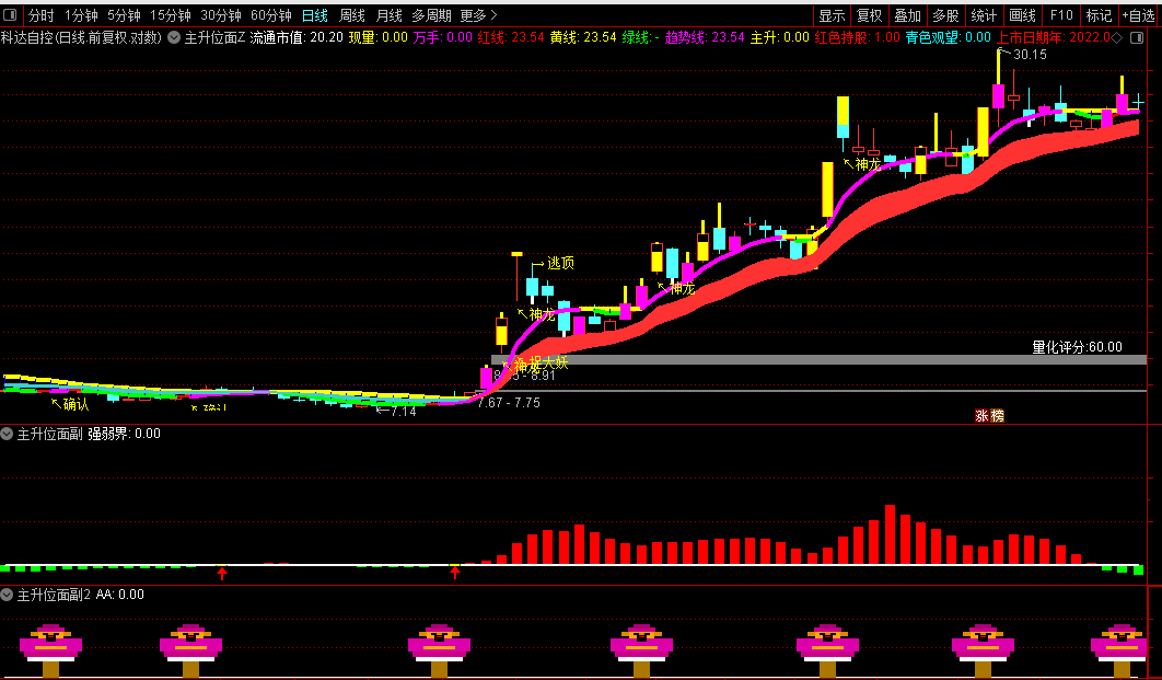 主升信号与确认信号:当两者在主图上相继或同时出现时,标志着个股进入主升浪的概率极高。