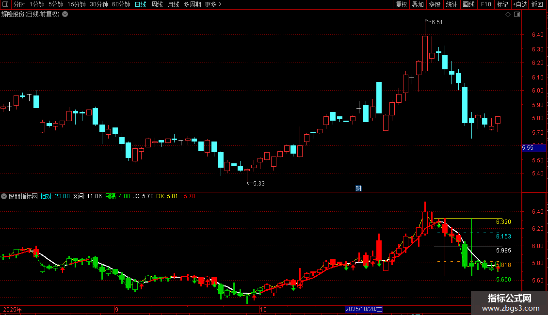 通达信简单实用的四分主图指标公式源码