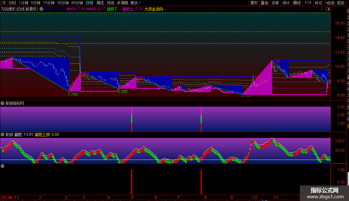 低:IF (LOW< TROUGH(2,N,1),LLV(LOW,N),TROUGH(2,N,1))LINETHICK2,COLORMAGENTA;