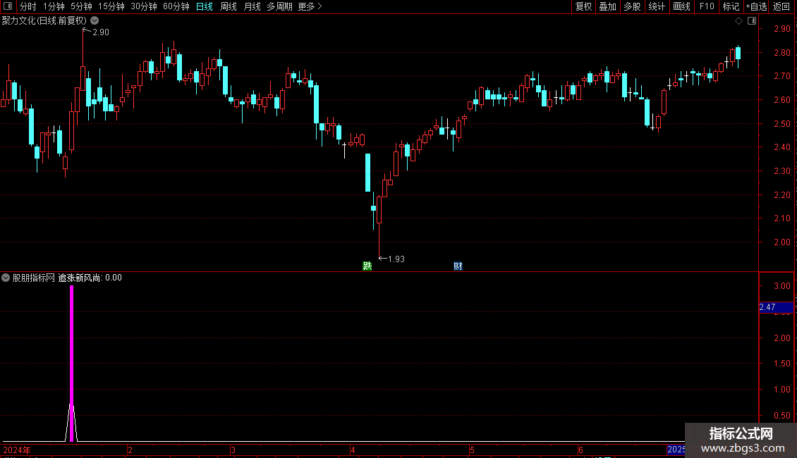 压力位:=IF(CROSS(J24,J),HIGH,REF(HIGH,BARSLAST(CROSS(J24,J)))),COLOR00FF00;