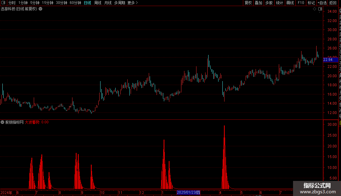 指标主要用于识别低位蓄势、可能即将启动上涨的股票。它通过比较当前价格与近期低点的关系,结合波动率和能量评估,判断市场是否在底部区域积聚动能。当指标值明显抬升并达到一定阈值时,视为资金悄然吸筹、大波段行情可能临近的信号,适合关注或分批布局。