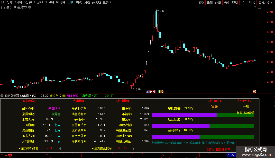 每股收益:=CONST(FINANCE(38));{最近一期}