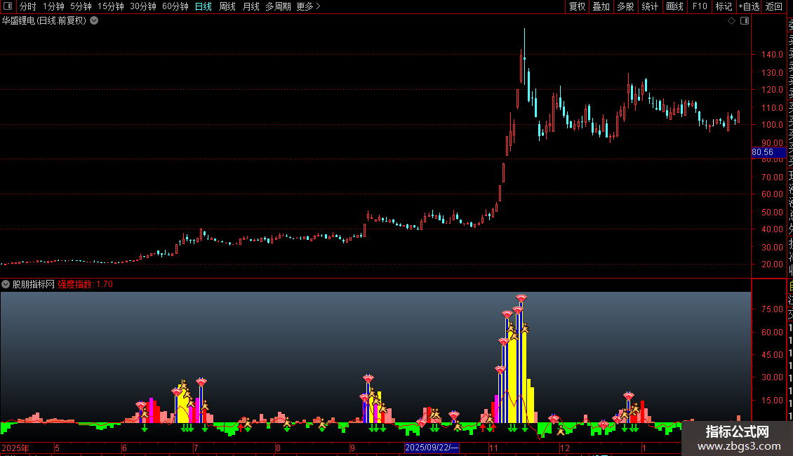 强度指数:ROUND2(FF*100,1) COLORRED;