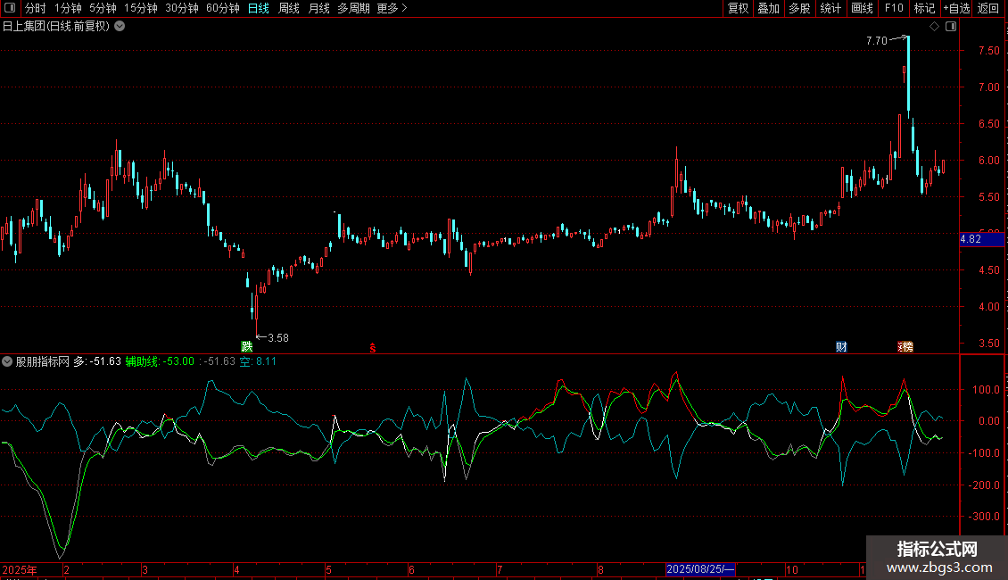 “辅助线”可用于跟踪“多”指标的趋势,金叉死叉可作为辅助参考。