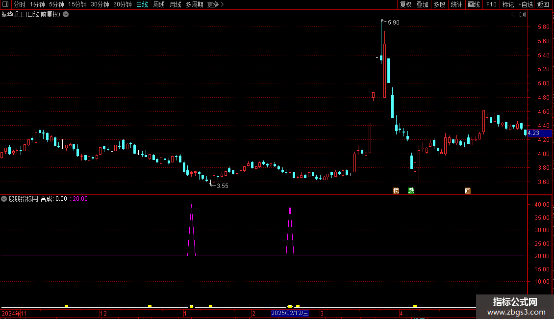 该指标由多个子条件组合而成,最终通过“合成”信号进行提示。其核心逻辑与用法如下: