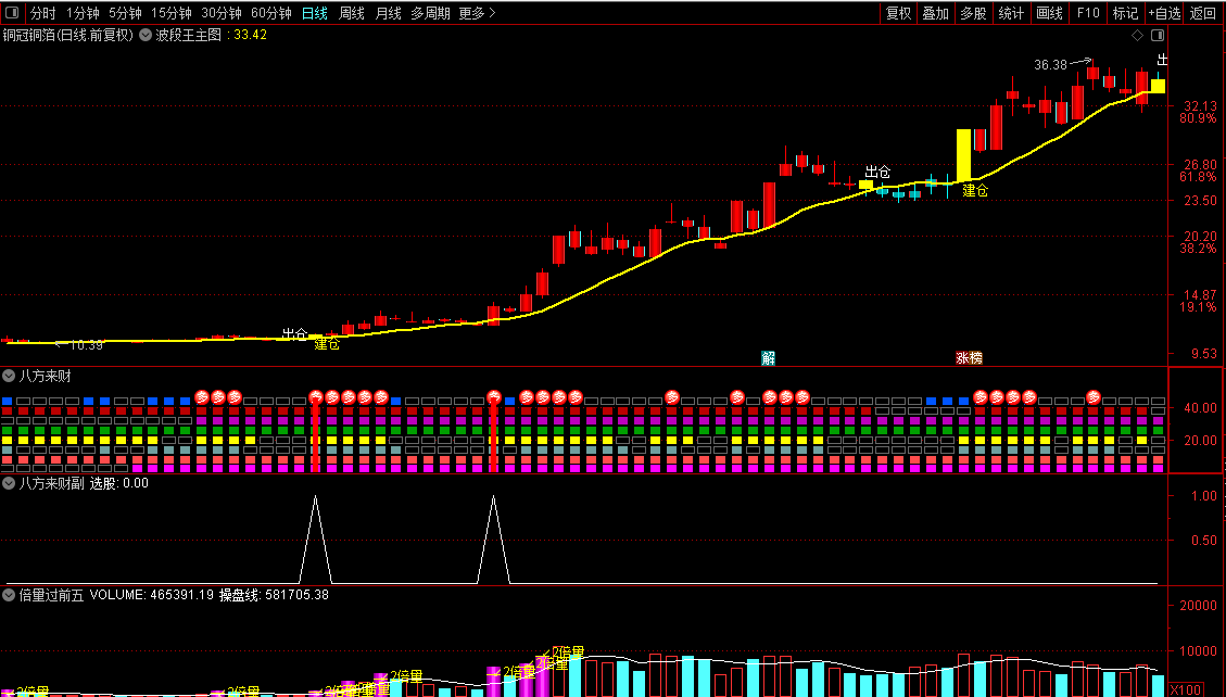 八方来财副图是个多周期、多指标共振趋势跟踪系统