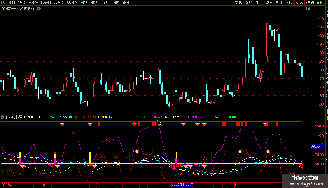 2. 信号识别:红色柱线/图标多为买入信号,绿色柱线提示风险;洋红色、黄色、红色特殊柱线及对应图标,是叠加多维度验证的强势买入信号,可靠性更高。