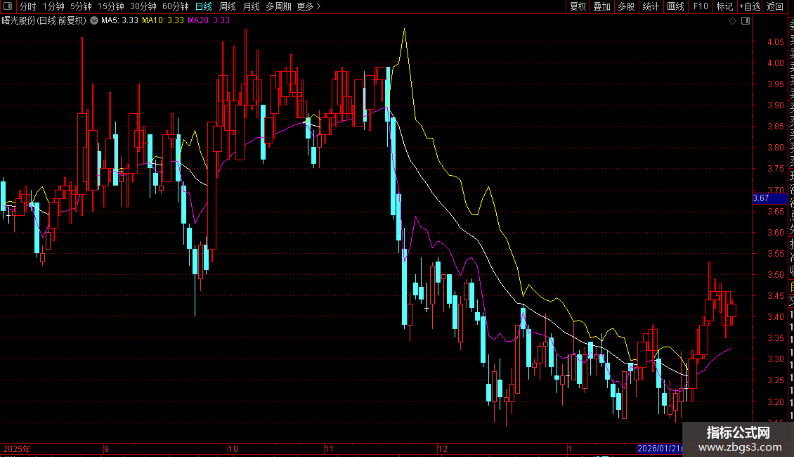 1、势(白色线):代表股价走势,作用等同于分时图中的黄色均线。