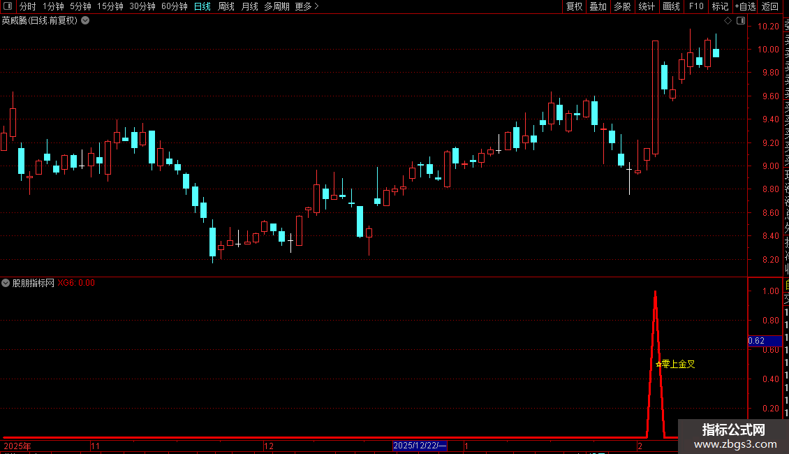 2. 信号特征:副图红色粗线+黄色“☆零上金叉”提示为买入时机;