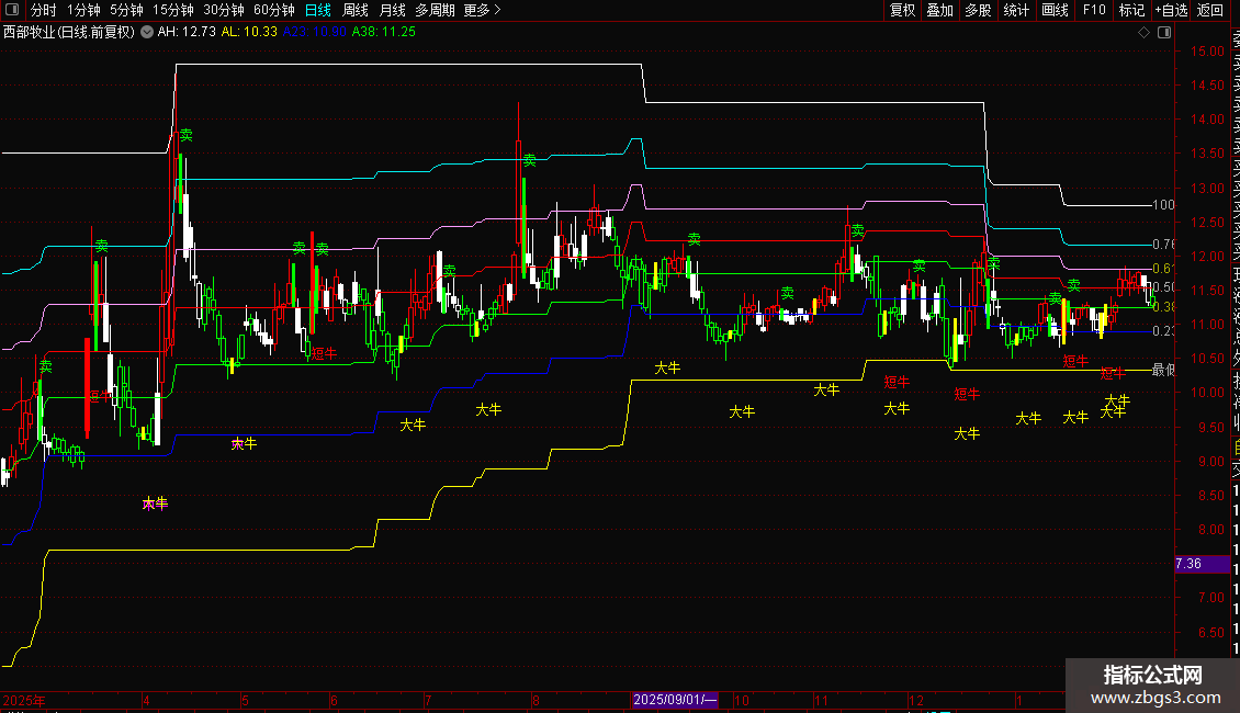 注意公式给出的短牛 中牛 大牛等股票技术公式信号 它们代表不同程度的上涨潜力 是进入市场的良好提示