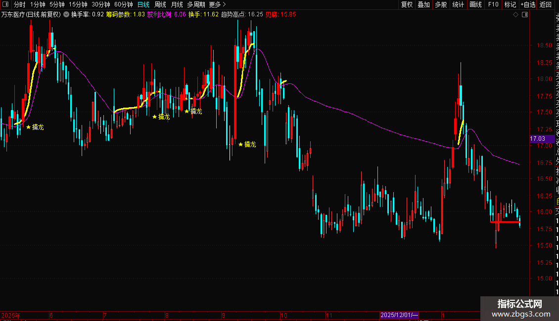 5. 实操技巧:擒龙信号出现后,持股以黄金线为支撑,破线止盈止损,只做线上趋势龙头。