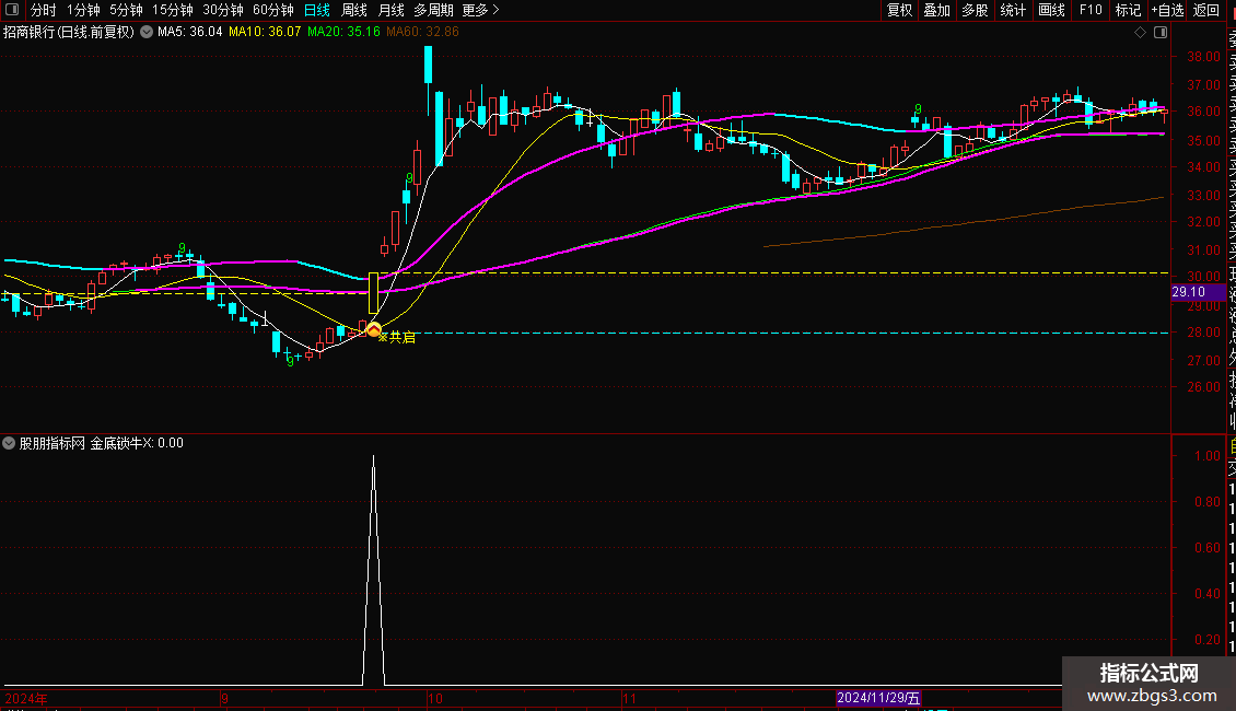 本金底锁牛指标为主图综合操盘指标,兼顾趋势研判 精准买点信号 量能资金分析 多周期共振四大核心功能,适用于A股股票日线级别分析,是通达信趋势波段型+持仓综合型主图指标,所有信号均为精准买点提示类信号。