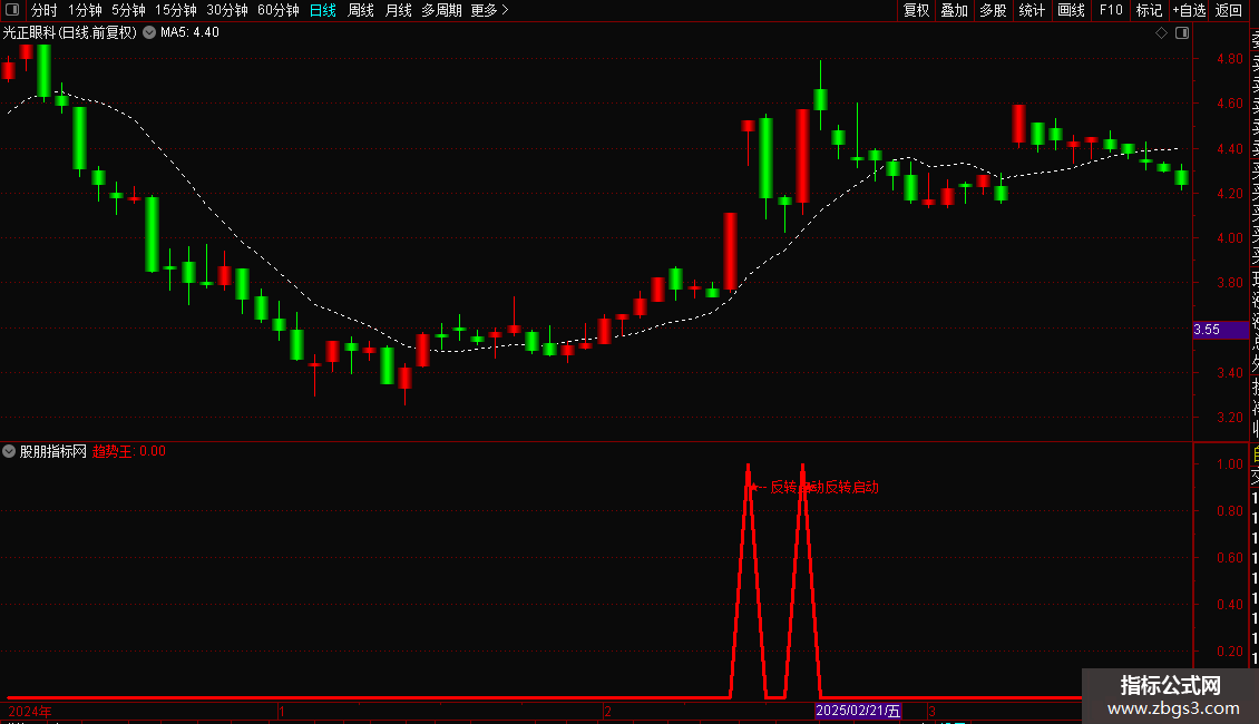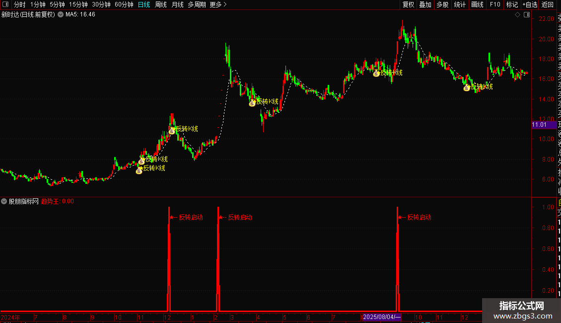主图出现★反转K线”字样,且K线变为红色实体时,代表反转信号确认。