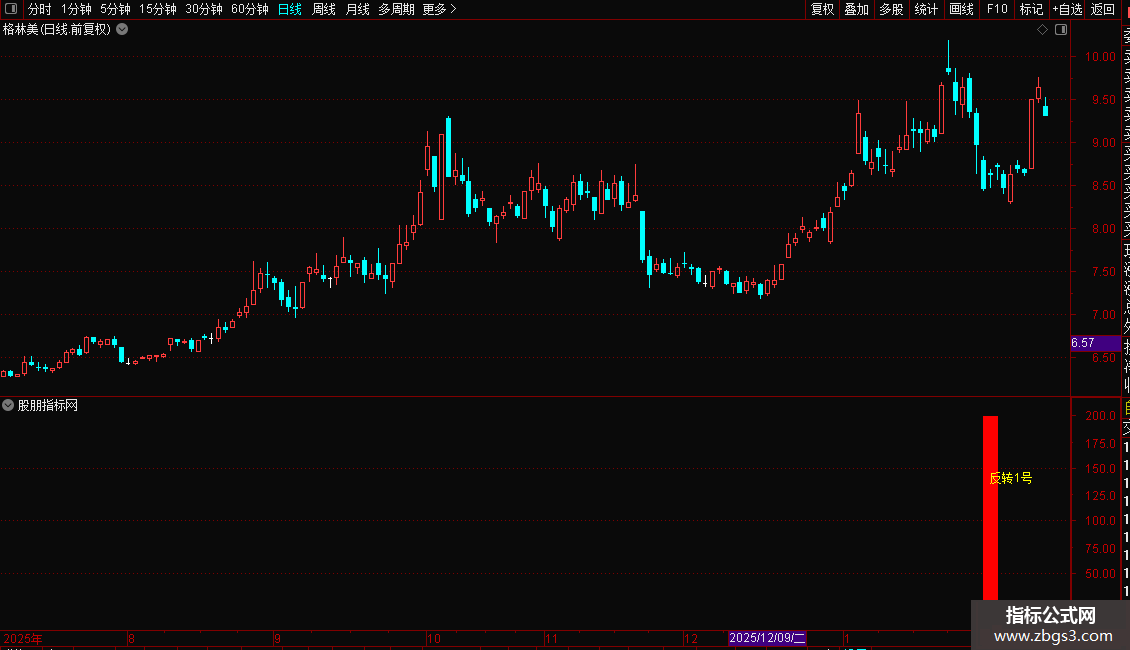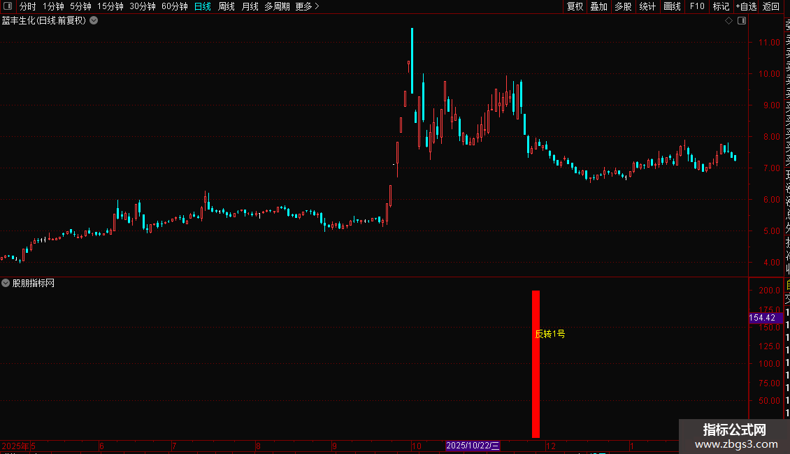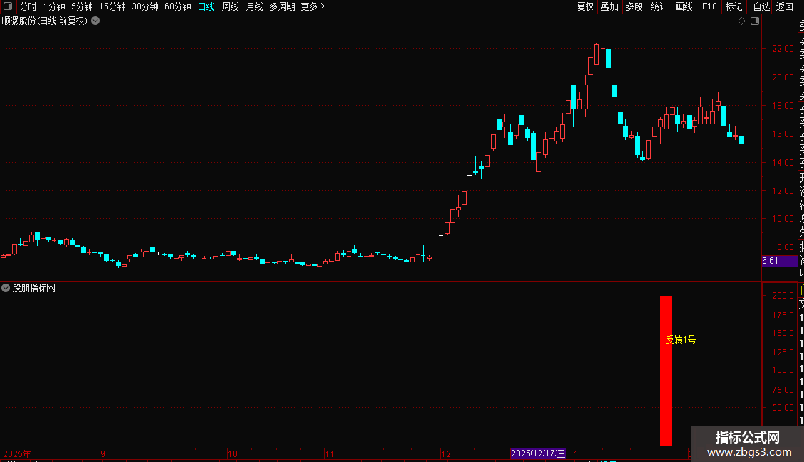 反转 1 号是一款专注强势回调、底部反转结构的通达信副图指标,信号稀缺精炼,不频繁提示,仅在关键形态区域出现。指标以红色柱体 +“反转 1 号” 文字直观标注反转区域,清晰易懂,手机与电脑端均可正常使用。支持预警与选股功能,可作为技术分析辅助工具,为交易参考提供直观的形态信号,适配日常看盘与策略辅助使用。