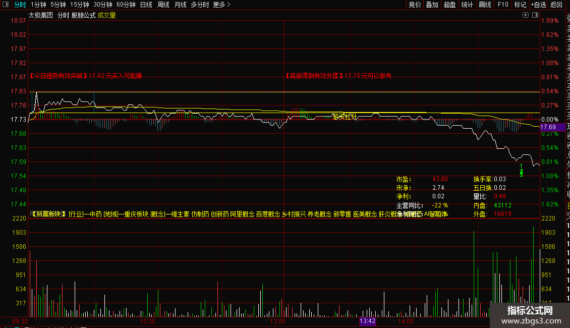 DRAWTEXT_FIX(1,0.87,0.71,0,'换手率:'),COLORYELLOW;