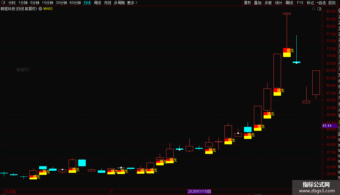 2. 核心信号为红黄柱线+“擒龙”文字标注,是短线买入关键参考;