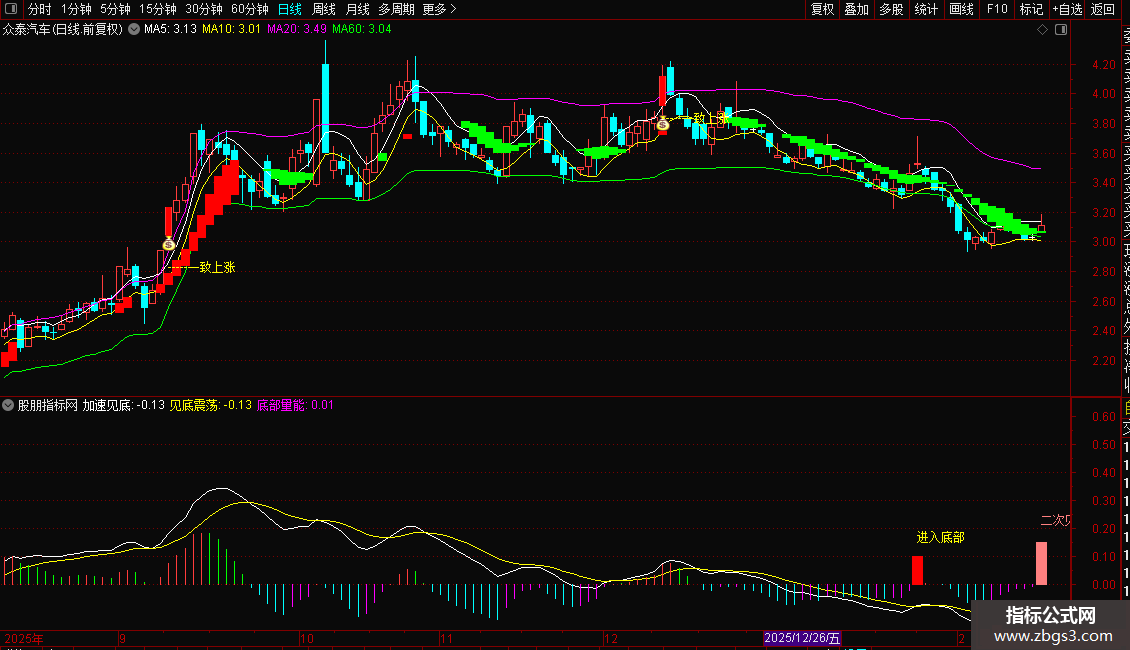 主要功能:通过趋势指标的多次金叉计数,将底部过程分为多个阶段,从首次进入底部到主力吸筹完成,逐步提示底部成熟度。
