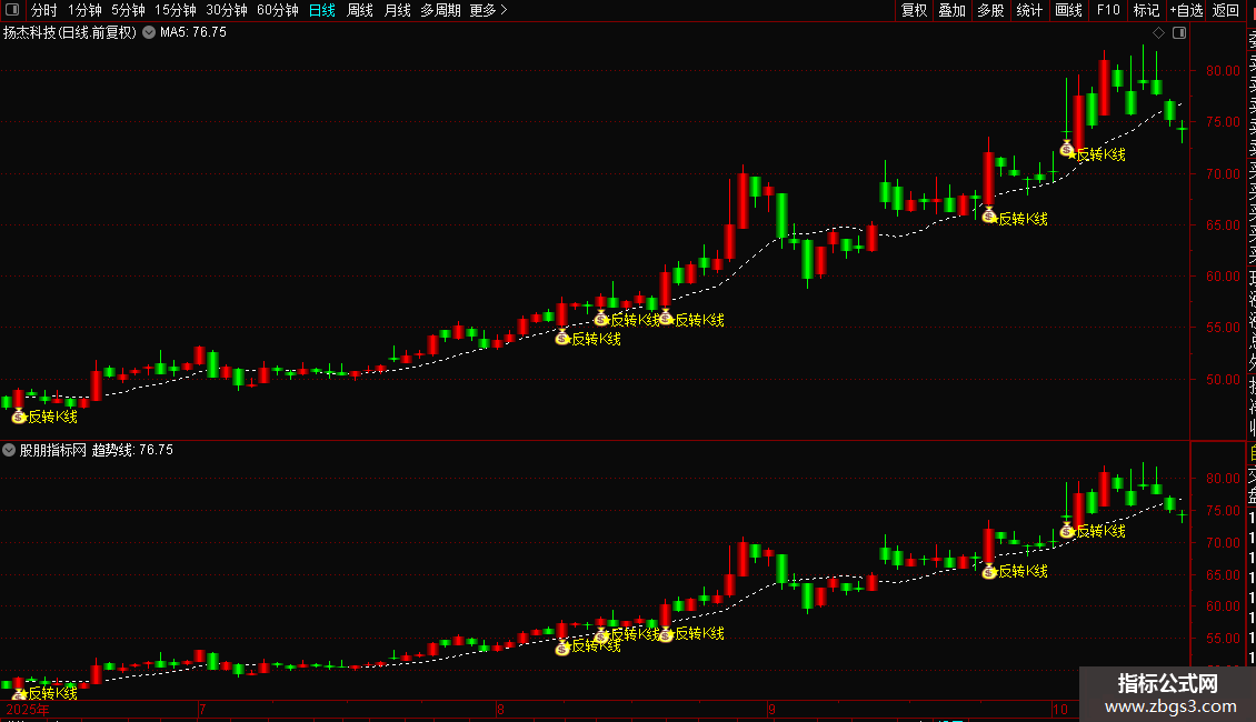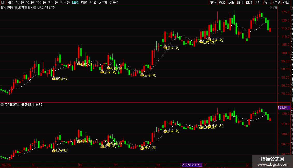 DRAWTEXT(条件,L*0.98,'★反转K线'),COLORYELLOW;