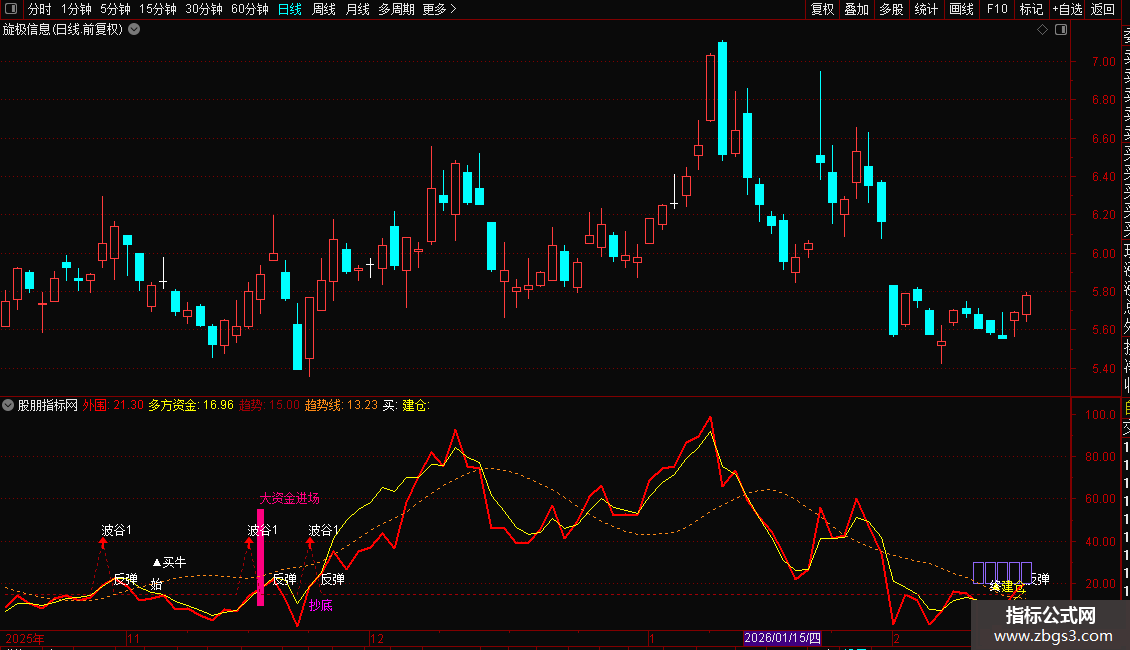 3. 这款通达信波谷反弹副图指标不含未来函数,信号稳定不漂移,是股民判断波谷反弹、跟随大资金操作的优质股票指标工具。