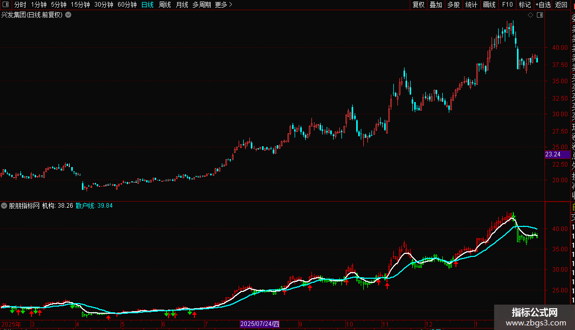 3. 机构与散户线:通过两条不同周期的均线(6日和18日)来粗略模拟“机构”与“散户”的成本趋势,其相对位置和交叉可辅助判断资金力量对比。